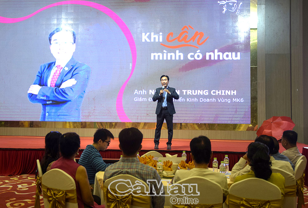 Ông Nguyễn Trung Chinh, Giám đốc Phát triển Kinh doanh vùng MK6, chia sẻ tại buổi họp tri ân khách hàng.