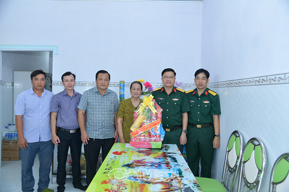 Đại tá Võ Thành Lê, Chính uỷ Bộ CHQS tỉnh Cà Mau, thăm và tặng quà gia đình bà Nguyễn Thị Đây (vợ liệt sĩ)