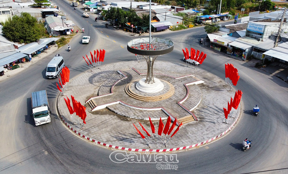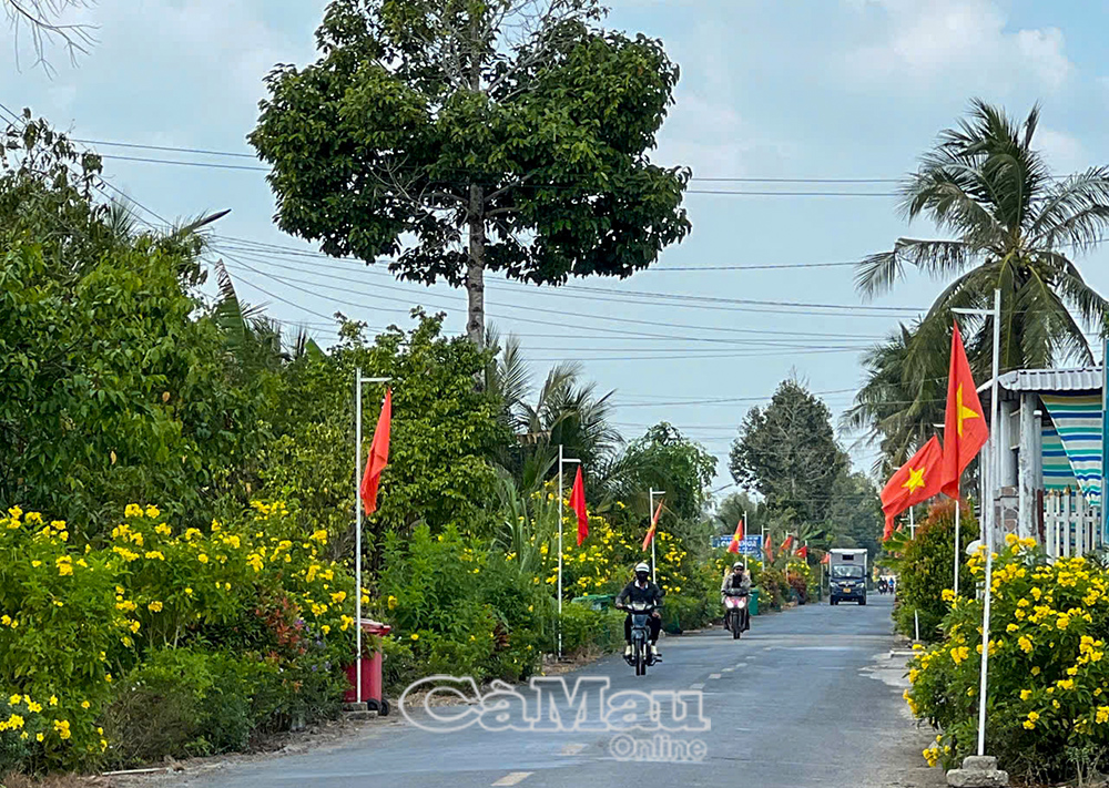 Cờ hoa rực rỡ chào mừng Đại hội Đại biểu Đảng toàn quốc tại cửa ngõ vào xã Khánh An.