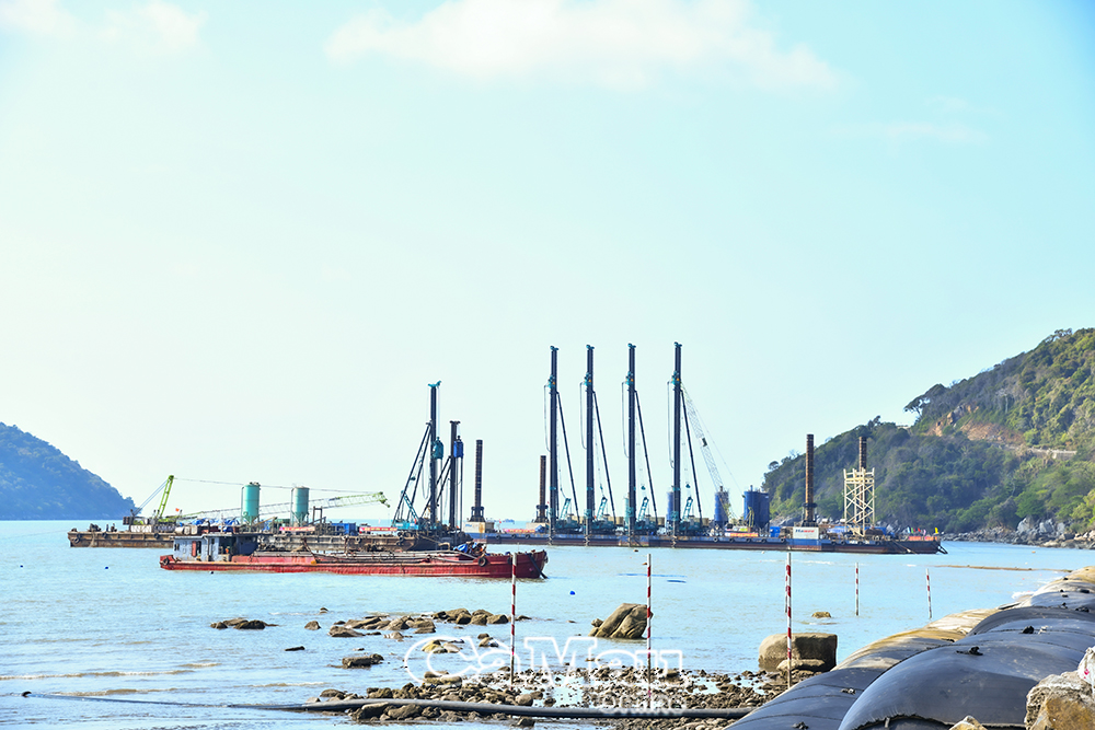 Công trình cảng lưỡng dụng tại đảo Hòn Khoai được triển khai thi công đúng tiến độ.