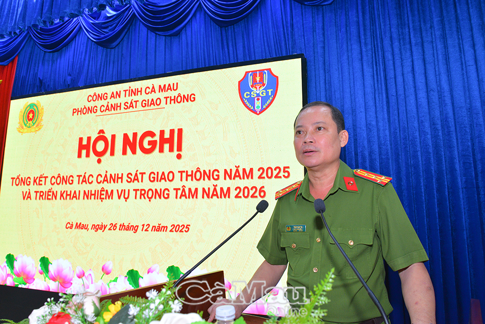 Nội dung trên được Đại tá Trần Văn Thi, Uỷ viên Ban Thường vụ Đảng uỷ, Phó Giám đốc Công an tỉnh, nhấn mạnh tại Hội nghị tổng kết công tác Cảnh sát giao thông năm 2025 và triển khai nhiệm vụ trọng tâm năm 2026 do Phòng Cảnh sát giao thông Công an tỉnh Cà Mau tổ chức ngày 26/12.
