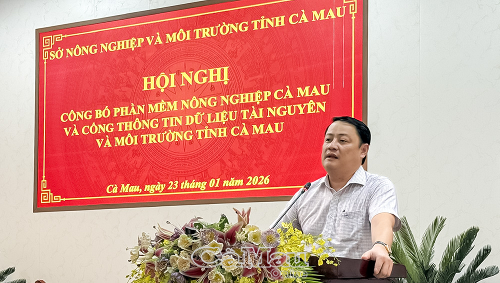 Báo Cà Mau Ngày 23/1, Sở Nông nghiệp và Môi trường tỉnh Cà Mau tổ chức Hội nghị công bố chính thức Phần mềm Nông nghiệp Cà Mau và Cổng thông tin dữ liệu tài nguyên và môi trường tỉnh. Dự hội nghị có lãnh đạo sở, các đơn vị trực thuộc và đại diện lãnh đạo các xã, phường trên địa bàn tỉnh.