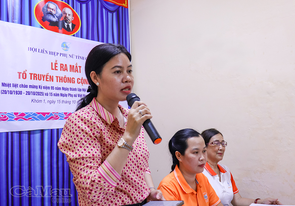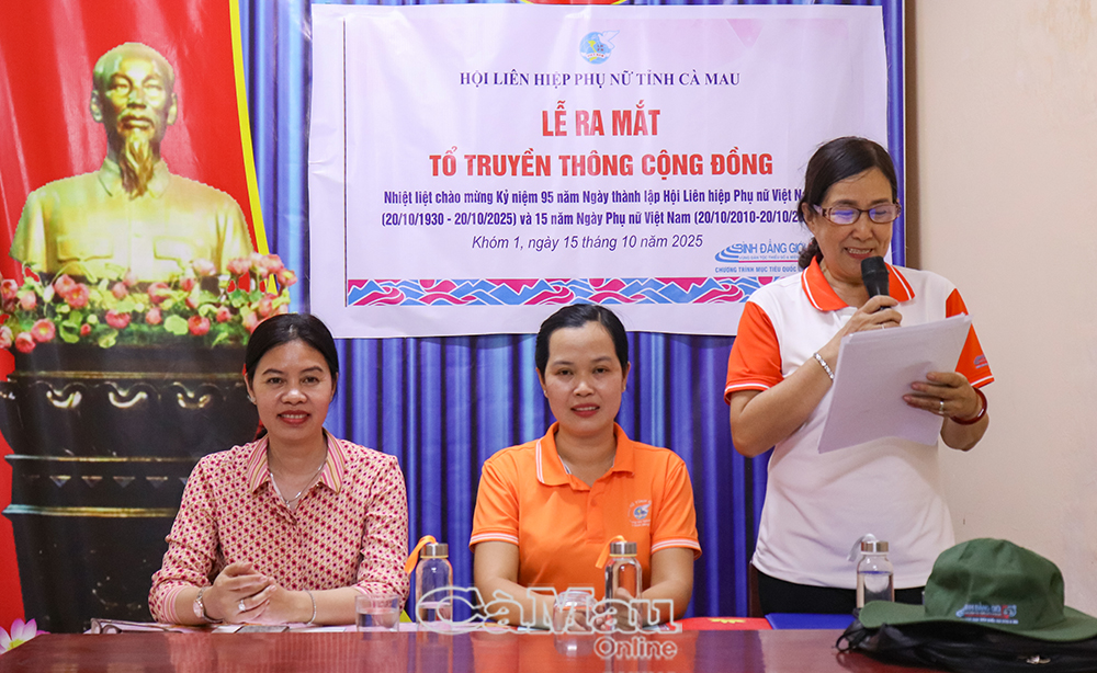 Phát biểu tại buổi lễ, bà Tô Thị Mỹ Thuận, Phó Chủ tịch Thường trực Hội LHPN tỉnh Cà Mau, nhấn mạnh: “Các Tổ truyền thông cộng đồng là cánh tay nối dài của tổ chức Hội ở cơ sở. Thông qua hoạt động của tổ, thông tin, chính sách và các mô hình hiệu quả sẽ được lan toả nhanh chóng, giúp nâng cao nhận thức của người dân nói chung và đồng bào dân tộc thiểu số nói riêng về bình đẳng giới và phòng, chống bạo lực trên cơ sở giới”.