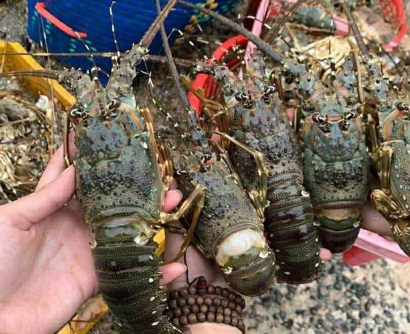 Tôm hùm Phú Yên (cũ) bị ảnh hưởng lũ được cửa hàng ở TP HCM rao bán với giá rẻ. Ảnh: NVCC.