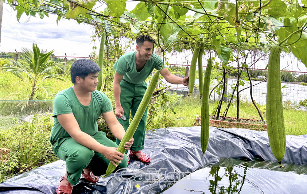 Đồn là nhà, các chiến sĩ tích cực tăng gia sản xuất, vừa tự túc thực phẩm, vừa rèn luyện tinh thần lao động.