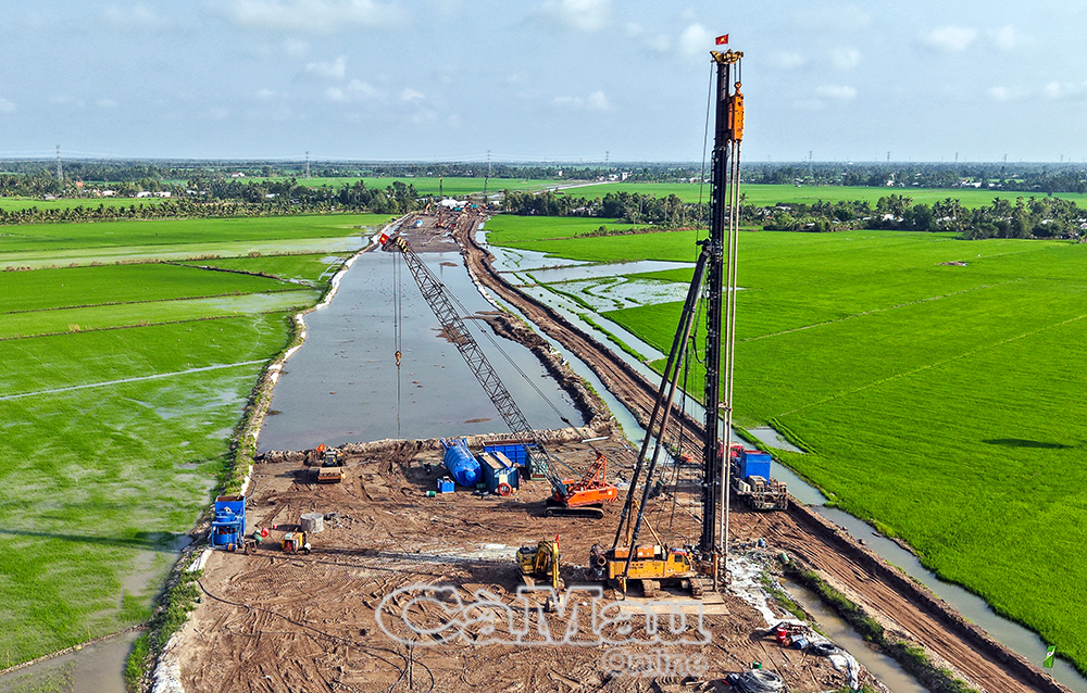 Xuyên qua những đồng lúa, băng qua những cánh rừng và vượt những dòng sông lớn, tuyến cao tốc Cà Mau - Ðất Mũi đang dần thành hình trong không khí rộn ràng, tạo nên tuyến giao thông huyết mạch, góp thêm sinh động vào bức tranh địa đầu cực Nam Tổ quốc.