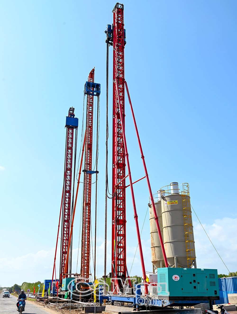 Công đoạn khoan và đóng cọc công trình cầu vượt sông Ông Ðốc nối Xã Trần Văn Thời và Xã Lương Thế Trân thuộc đoạn thành phần Cà Mau - Cái Nước.