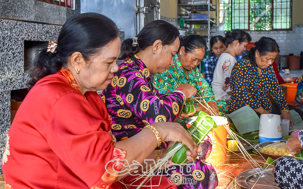 Trước ngày diễn ra tết Chôl Chnăm Thmây, đồng bào Khmer tập trung vào chùa gói bánh để chuẩn bị tiếp khách trong 3 ngày tết.