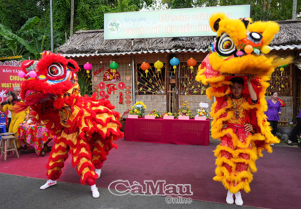 Không khí chương trình thêm rộn ràng với hoạt động múa lân sư rồng khai xuân, trải nghiệm làm mứt, nướng bánh phồng nếp và các tiết mục đờn ca tài tử đặc sắc.