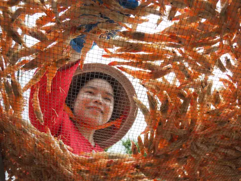 Trong số các làng nghề, nghề làm tôm khô luôn nhộn nhịp hơn cả. Con tôm, sản vật quen thuộc của vùng đất địa đầu cực Nam Tổ quốc từ lâu đã gắn bó mật thiết với đời sống người dân Cà Mau. Nhờ nguồn tôm tự nhiên phong phú, qua bàn tay khéo léo của người dân, những mẻ tôm khô đỏ au, thơm lừng ra đời, vừa bảo quản được lâu, vừa giữ trọn hương vị mặn mòi của hương rừng, vị biển. Những ngày này, nhà nhà tất bật luộc tôm, phơi nắng, đóng gói để kịp giao hàng phục vụ thị trường Tết.