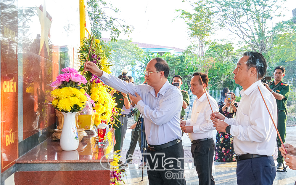 Trước buổi lễ, đồng chí Nguyễn Hồ Hải, Uỷ viên Ban Chấp hành Trung ương Đảng, Bí thư Tỉnh uỷ, cùng các đồng chí lãnh đạo HĐND, UBND tỉnh và đại biểu thắp hương tri ân tại Đài tưởng niệm các anh hùng liệt sĩ xã Thới Bình.