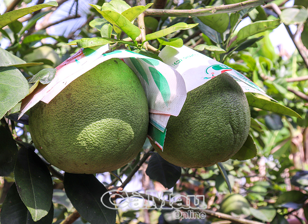 “Qua nhiều năm trồng bưởi, tôi rút ra kinh nghiệm là ngoài việc chăm sóc để trái ngon, ngọt thì khâu che nắng rất quan trọng. Trái được che kỹ sẽ tránh cháy nắng, vỏ xanh đẹp, bán được giá cao hơn và thương lái cũng ưa chuộng hơn”, anh Việt chia sẻ.