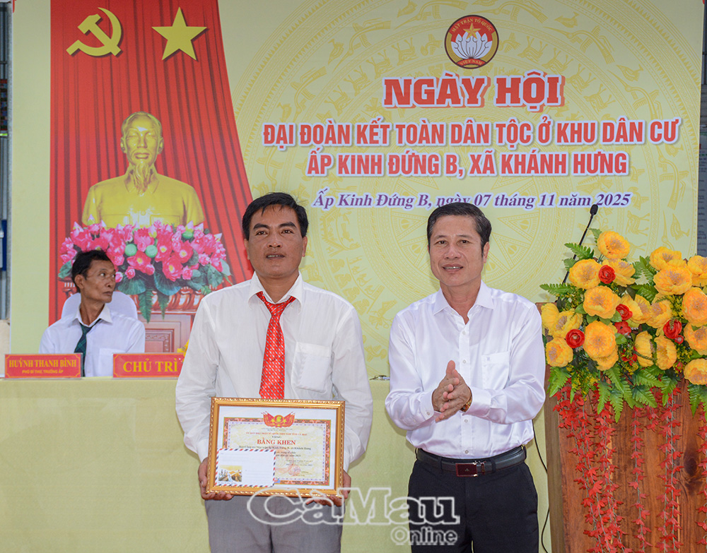 Sáng 7/11, Uỷ viên Ban Thường vụ Tỉnh uỷ, Giám đốc Sở Nội vụ Trần Hữu Phước đến dự Ngày hội Đại đoàn kết toàn dân tộc ấp Kinh Đứng B, xã Khánh Hưng, kỷ niệm 95 năm Ngày truyền thống Mặt trận Tổ quốc Việt Nam (18/11/1930-18/11/2025).