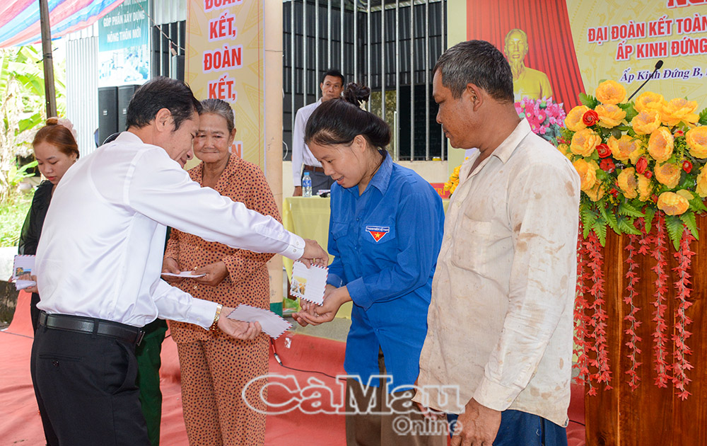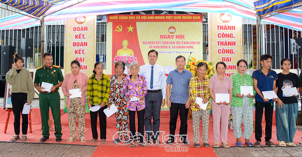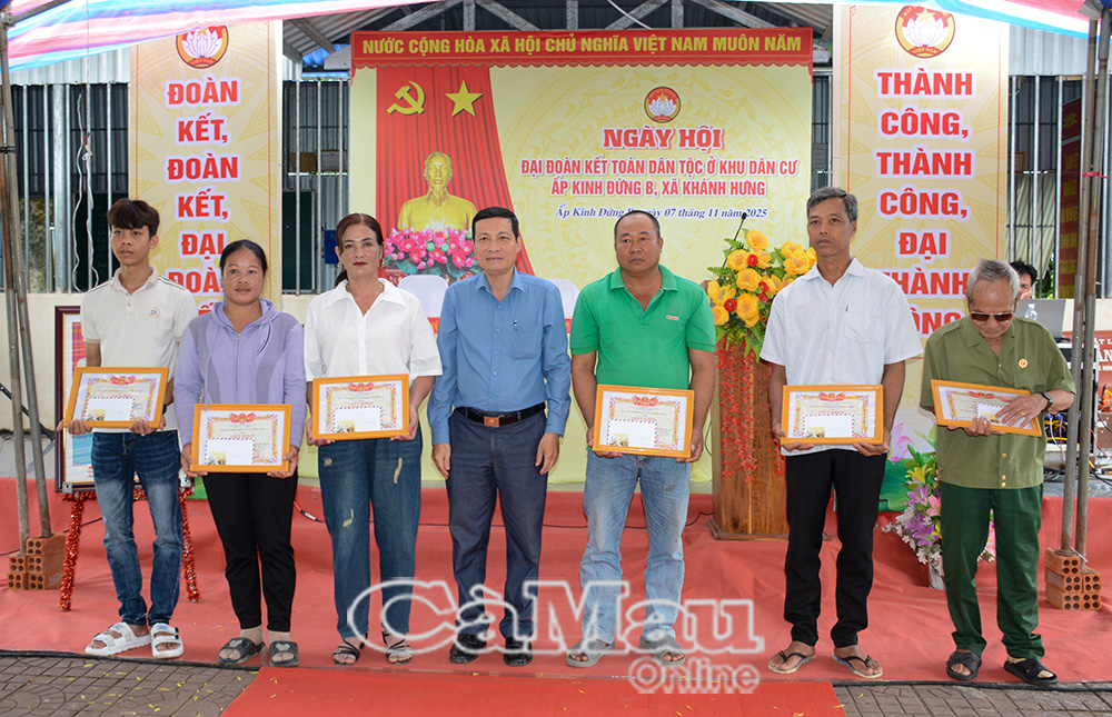 Dịp này, Uỷ ban MTTQ Việt Nam tỉnh trao bằng khen và quà tặng cho Ban Công tác Mặt trận ấp Kinh Đứng B, đồng thời tặng quà cho 5 hộ nghèo trên địa bàn. Ban Thường trực Uỷ ban MTTQ Việt Nam xã Khánh Hưng khen thưởng 6 hộ gia đình tiêu biểu trong các phong trào do Mặt trận phát động và tặng quà cho 24 hộ nghèo, cận nghèo, hộ có hoàn cảnh đặc biệt khó khăn.