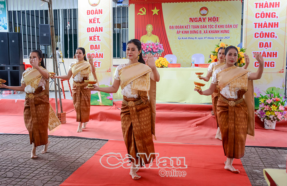 Ngày hội diễn ra trong không khí ấm áp, đoàn kết và phấn khởi. Bà con cùng nhau tham gia các trò chơi dân gian, thưởng thức những tiết mục văn nghệ đặc sắc do Đoàn Nghệ thuật Khmer biểu diễn, tạo nên bầu không khí vui tươi, gắn bó cộng đồng.