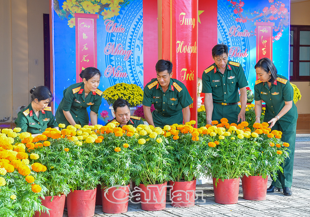 Báo Cà Mau Những ngày giáp tết Nguyên đán Bính Ngọ 2026, hoà chung không khí rộn ràng của mọi nhà, tại các đơn vị lực lượng vũ trang (LLVT) tỉnh Cà Mau, cán bộ, chiến sĩ tích cực chỉnh trang doanh trại, tạo cảnh quan khang trang, chính quy, phấn khởi đón xuân với quyết tâm hoàn thành xuất sắc nhiệm vụ trong năm mới.