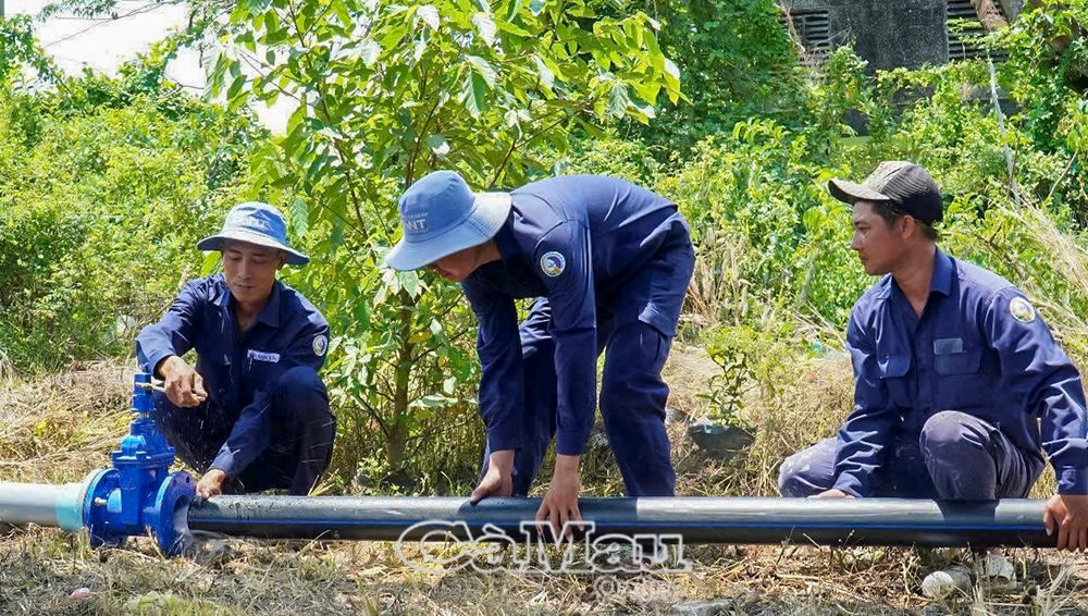 Nhân viên Công ty Cổ phần cấp nước Cà Mau tăng cường kiểm tra hệ thống cấp nước, đảm bảo cung cấp nước an toàn phục vụ Đại hội.
