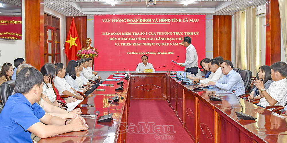 Ngay trong ngày làm việc đầu tiên sau nghỉ Tết (23/2), Thường trực Tỉnh uỷ Cà Mau tổ chức các đoàn công tác đến kiểm tra, làm việc với nhiều cơ quan, đơn vị, địa phương trong tỉnh nhằm nắm bắt tình hình triển khai nhiệm vụ đầu năm.