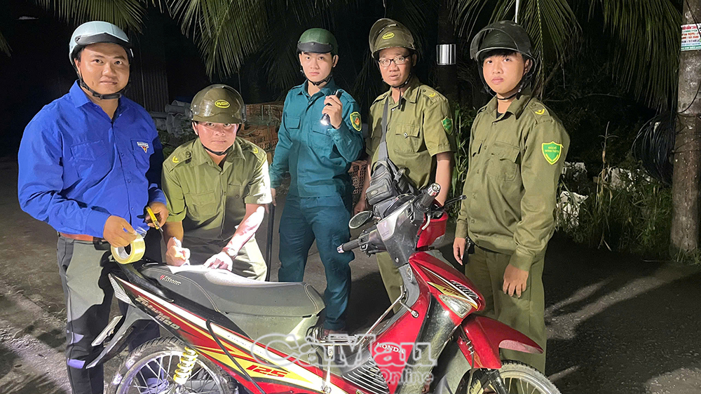 Tổ tuần tra liên ấp Công an xã Phú Mỹ ra quân tuần tra, kiểm soát, nhắc nhở người dân bảo quản tài sản cá nhân.