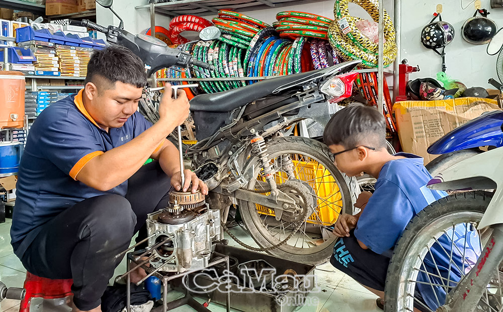 Thanh niên đến học nghề từ mô hình của anh Sơn Thol sẽ được truyền dạy các kỹ năng từ cơ bản đến nâng cao, đảm bảo trở thành thợ sửa xe chuyên nghiệp khi ra nghề.