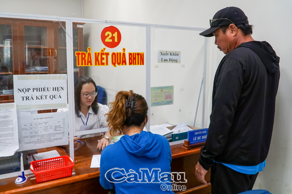 Tại Trung tâm Phục vụ hành chính công tỉnh Cà Mau, quầy tiếp nhận và giải quyết các thủ tục BHTN mỗi ngày có khoảng 200 lượt người lao động đến thực hiện hồ sơ (tương đương gần 6.000 lượt/tháng).