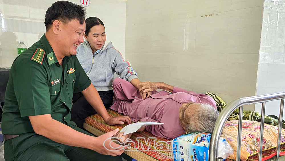Đồn Biên phòng Rạch Gốc phối hợp Hội Liên hiệp Phụ nữ Xã Phan Ngọc Hiển thăm, tặng quà Mẹ Việt Nam Anh hùng Nguyễn Thị Gập.
