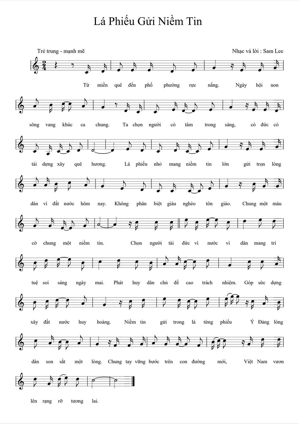 Ca từ trong ca khúc "Lá phiếu gửi niềm tin".
