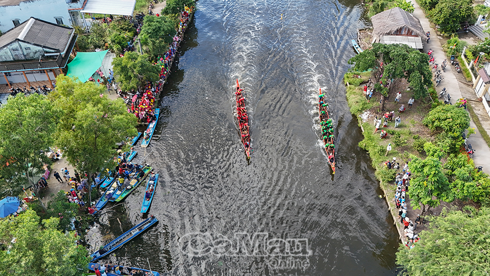 Báo Cà Mau Ngày 11/10, tại sông Đường Xuồng, trước cổng chùa Rạch Giồng (ấp Đường Đào, xã Hồ Thị Kỷ), diễn ra Giải đua ghe Ngo mini, chào mừng Lễ Dâng y KaThina năm 2025. Sự kiện thu hút hàng trăm vận động viên và người dân tham gia, cổ vũ, tạo nên bầu không khí rộn ràng, vui tươi, phấn khởi trước thềm lễ hội.