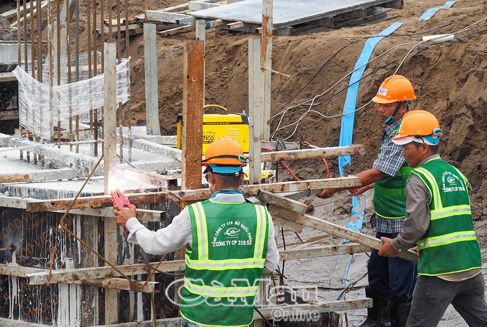 Không khí lao động khẩn trương, sôi nổi tại công trình xây dựng Bệnh viện Đa khoa tỉnh Cà Mau.