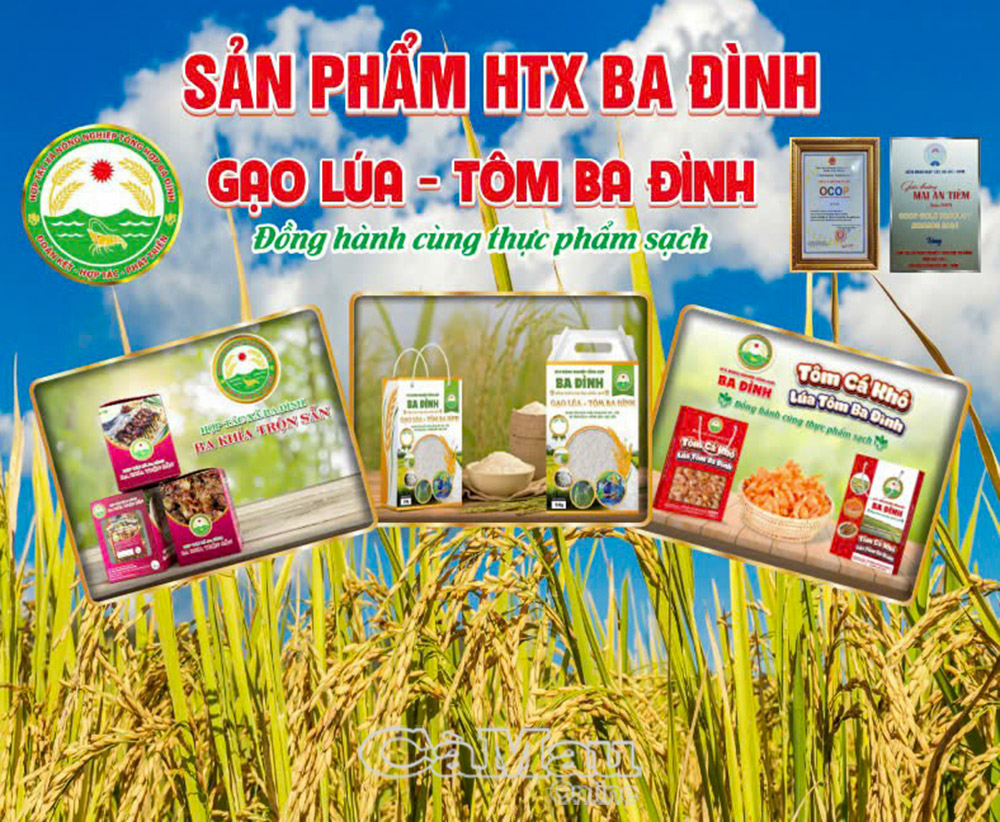 Ông Nông Văn Thạch, Chủ tịch Hội đồng Quản trị, Giám đốc HTX Nông nghiệp tổng hợp Ba Ðình, chia sẻ: “Trong xu thế số, HTX hoàn thiện chất lượng, bao bì sản phẩm, đăng ký các chứng nhận uy tín; sản phẩm gạo lúa - tôm Ba Ðình đạt chuẩn OCOP và giải thưởng Mai An Tiêm năm 2024. HTX còn xây dựng vùng nuôi tôm sú sạch 400 ha theo tiêu chuẩn ASC để xuất khẩu và phối hợp với Viện lúa ĐBSCL thử nghiệm mô hình sản xuất lúa - tôm hữu cơ”.