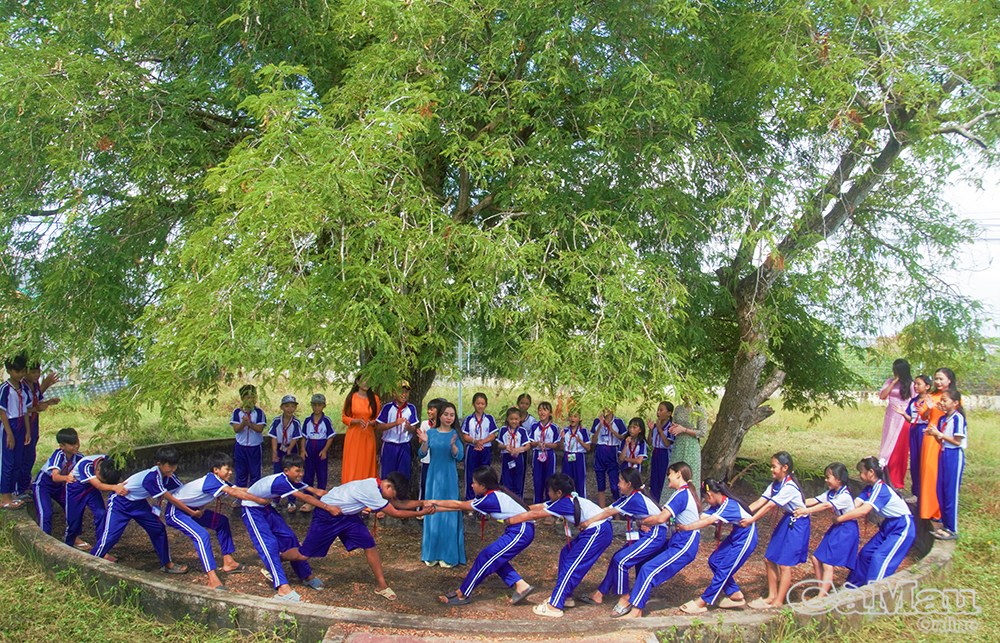 Giáo viên, học sinh Trường Tiểu học 1, Xã Phan Ngọc Hiển viếng Tượng đài 10 anh hùng liệt sĩ Khởi nghĩa Hòn Khoai.