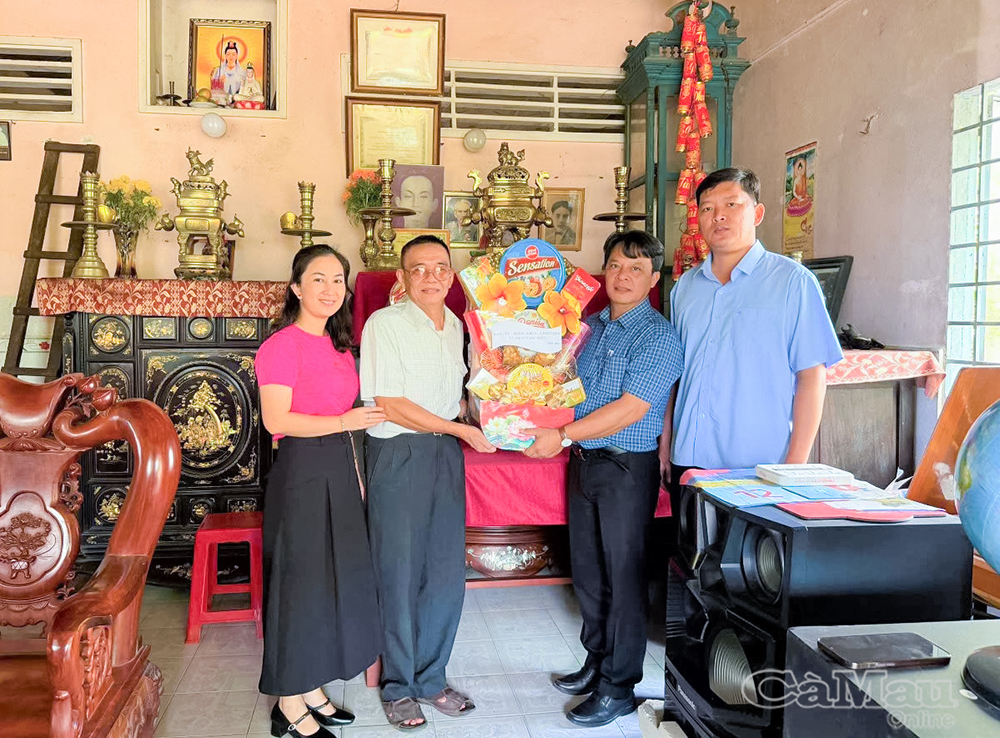 Ông Tiết Minh Khởi, Uỷ viên Ban Thường vụ Đảng uỷ, Phó Chủ tịch UBND Xã Phan Ngọc Hiển (thứ 2, bên phải) thăm, tặng quà thân nhân gia đình anh hùng Phan Ngọc Hiển.