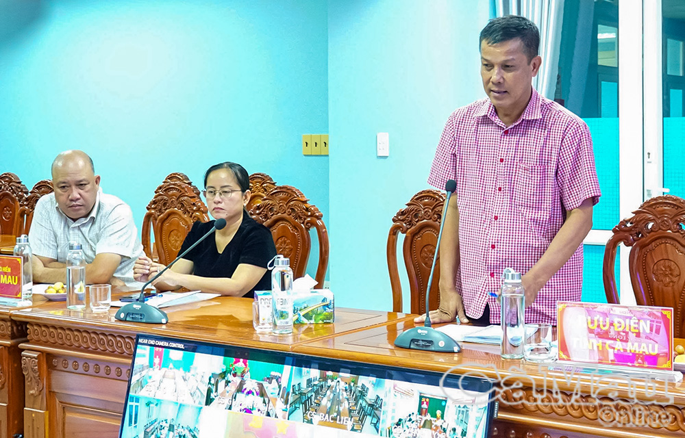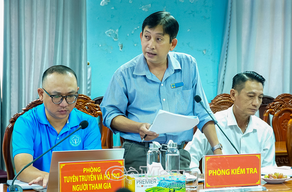 Ông Phạm Minh Thiết, Phó Giám đốc Trung tâm kinh doanh Bưu điện tỉnh Cà Mau, Giám đốc Bưu điện Khu vực Cà Mau, chia sẻ kết quả thực hiện chỉ tiêu phát triển BHXH tự nguyện, BHYT do đơn vị phụ trách.