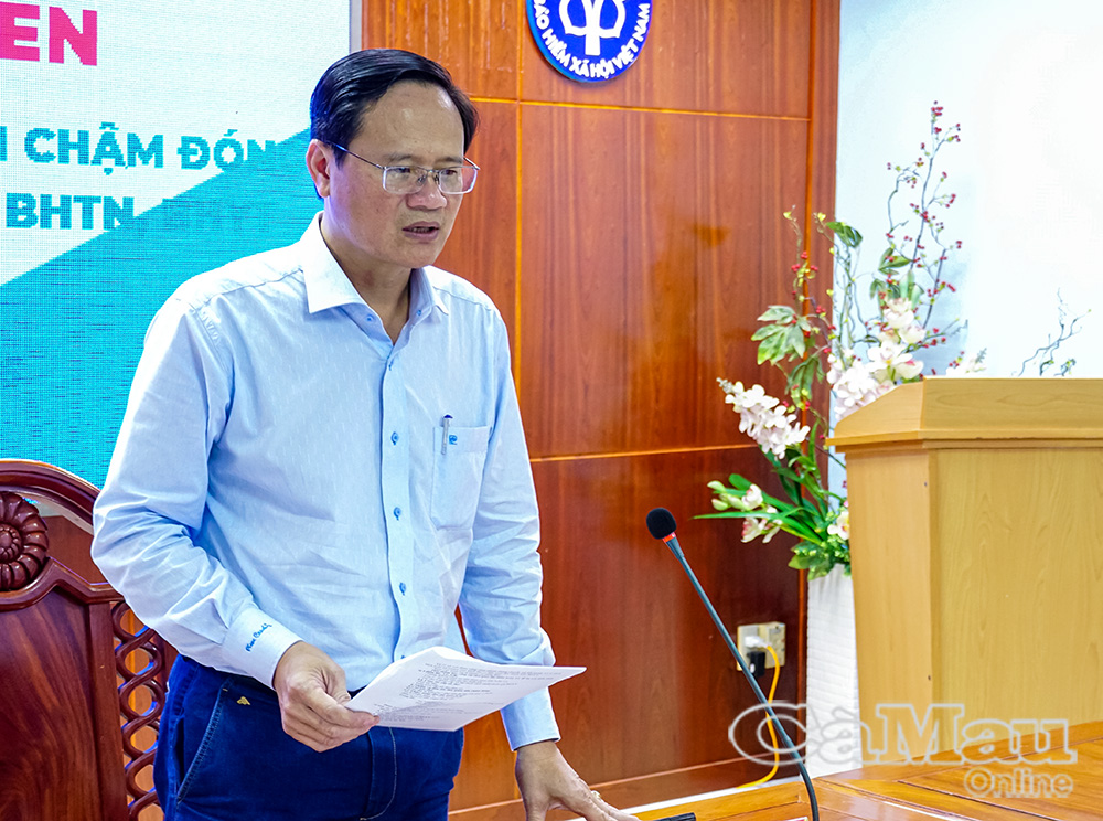 Ông Lê Hùng Cường, Phó Giám đốc BHXH tỉnh Cà Mau, phát biểu chỉ đạo tại hội nghị.