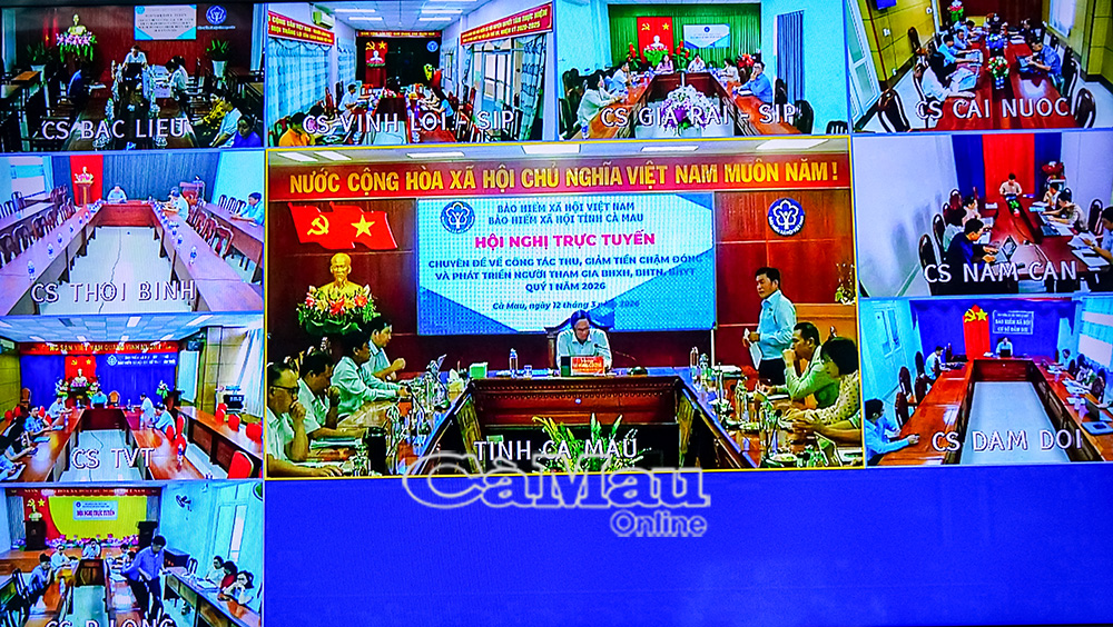 Sáng 12/3, Bảo hiểm xã hội (BHXH) tỉnh Cà Mau tổ chức hội nghị trực tuyến đánh giá tình hình thực hiện công tác thu, giảm tiền chậm đóng và phát triển người tham gia BHXH, BHYT, BHTN trong quý I/2026.