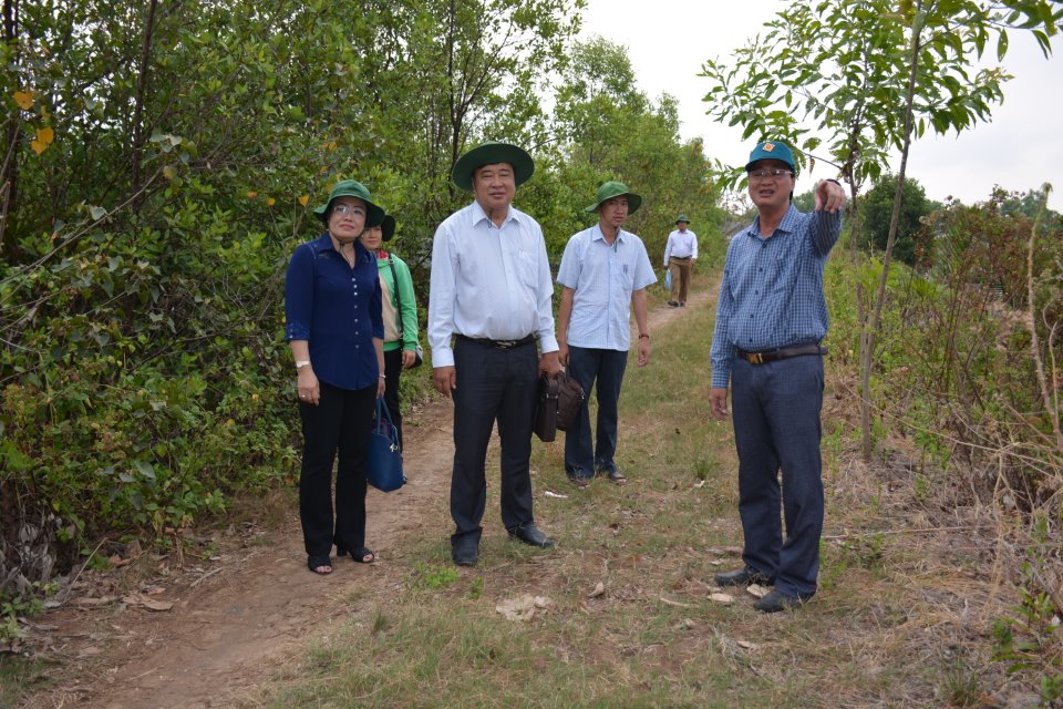 | Lãnh đạo HĐND huyện Đầm Dơi giám sát lộ đất đen tại xã Tân Tiến. |