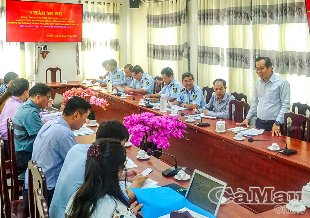 Tại buổi làm việc, ông Dương Vũ Nam, Phó Giám đốc Sở Công thương tỉnh Cà Mau, báo cáo tình hình phòng, chống buôn lậu, gian lận thương mại, hàng giả; công tác bình ổn thị trường và bảo đảm cân đối cung - cầu hàng hoá trước, trong và sau Tết. Theo đó, lực lượng Quản lý thị trường tỉnh thường xuyên bám sát địa bàn, chủ động nắm bắt diễn biến thị trường, tăng cường kiểm tra có trọng tâm, trọng điểm, tập trung vào các mặt hàng thiết yếu và lĩnh vực tiềm ẩn nguy cơ vi phạm cao.