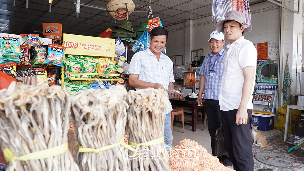 Kiểm tra thực tế hộ kinh doanh mặt hàng khô tại khu làng nghề 58 hộ, trước Khu du lịch Mũi Cà Mau.