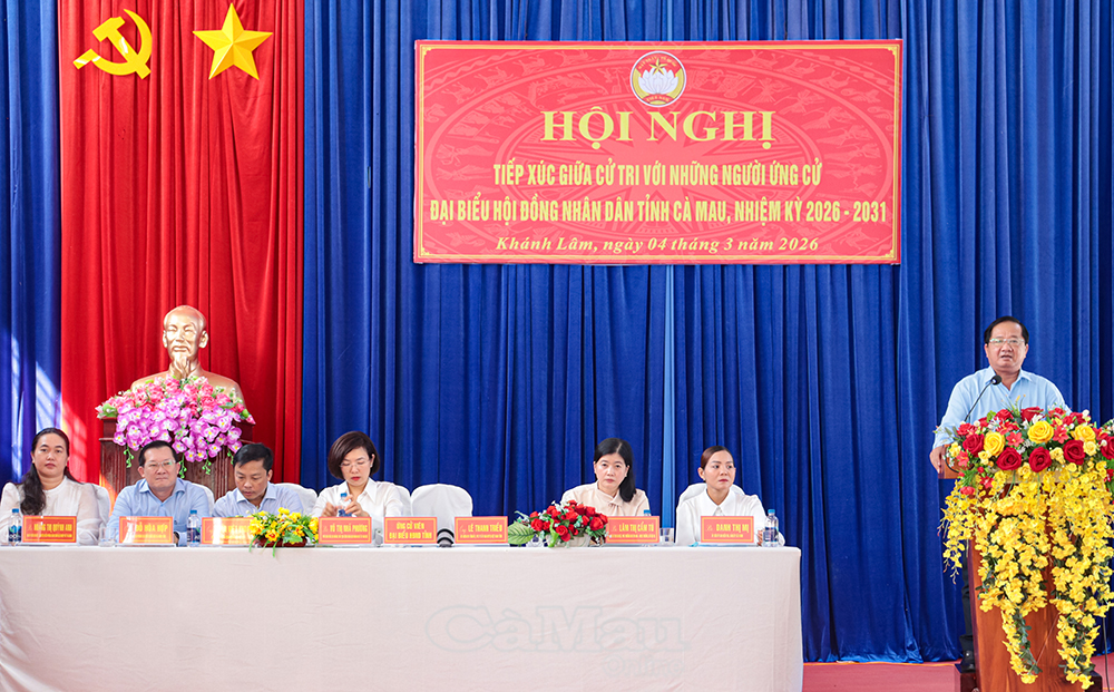 Tại hội nghị, cử tri được nghe giới thiệu tiểu sử tóm tắt và chương trình hành động của 7 ứng cử viên đại biểu HĐND tỉnh nhiệm kỳ 2026-2031, gồm: Bà Hoàng Thị Quỳnh Anh, Chuyên viên phòng Hành chính sự nghiệp, Sở Tài chính tỉnh Cà Mau; Ông Đỗ Hoà Hợp, Phó Chánh Văn phòng Đoàn đại biểu Quốc hội và HĐND tỉnh Cà Mau; Ông Đoàn Việt Khoa, Bí thư Đảng uỷ, Chủ tịch HĐND xã Nguyễn Phích; Bà Danh Thị Mị, Uỷ viên Uỷ ban Kiểm tra Đảng uỷ xã U Minh; Bà Võ Thị Nhã Phương, Phó Giám đốc Chi nhánh Khí Tây Nam Bộ; Bà Lâm Thị Cẩm Tú, Phó Trưởng ban Thi đua - Khen thưởng, Sở Nội vụ tỉnh Cà Mau; Ông Lê Thanh Triều, Uỷ viên Ban Thường vụ Tỉnh uỷ, Phó Chủ tịch Thường trực Uỷ ban MTTQ Việt Nam tỉnh Cà Mau. |