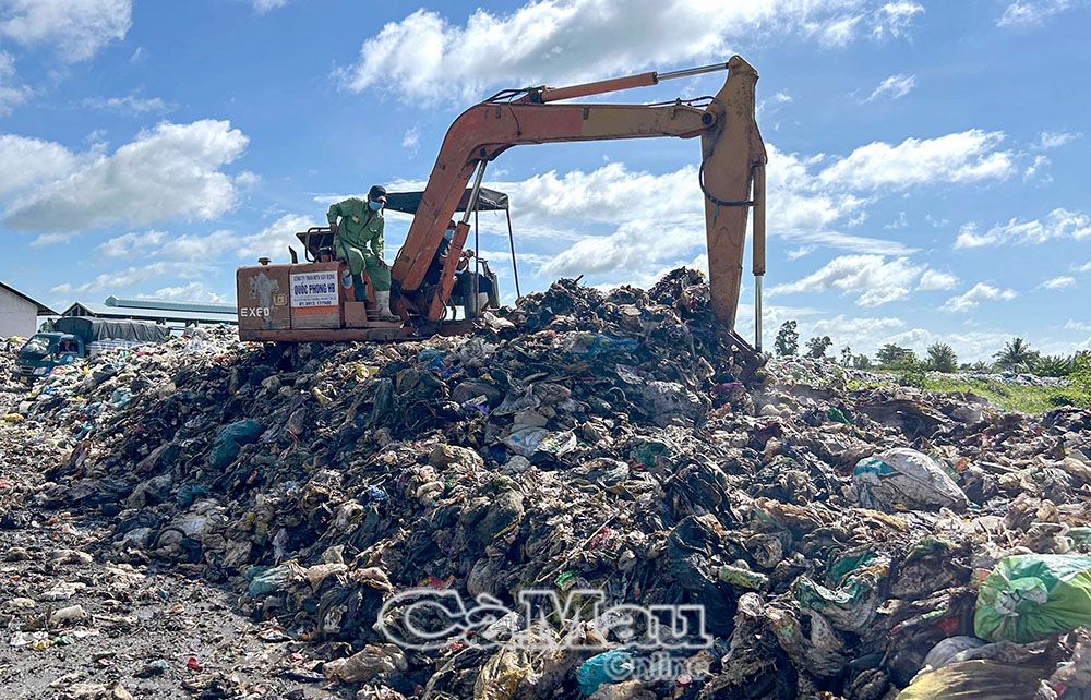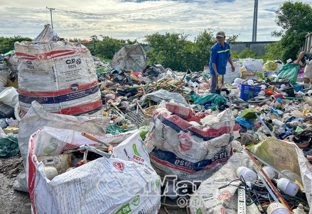 Rác thải sau khi được vận chuyển về bãi chôn lấp Xã Phan Ngọc Hiển tiếp tục được phân loại.