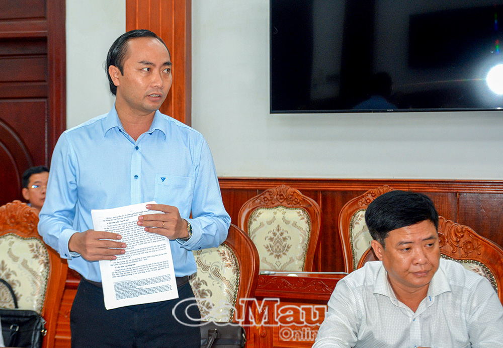 Đồng chí Phạm Tuấn Tài, Phó Chủ tịch Uỷ ban MTTQ Việt Nam tỉnh, Bí thư Tỉnh đoàn Cà Mau, phát biểu về vai trò xung kích của thanh niên trong hỗ trợ dịch vụ số, thúc đẩy khởi nghiệp sáng tạo và củng cố Ban Chỉ đạo 35.