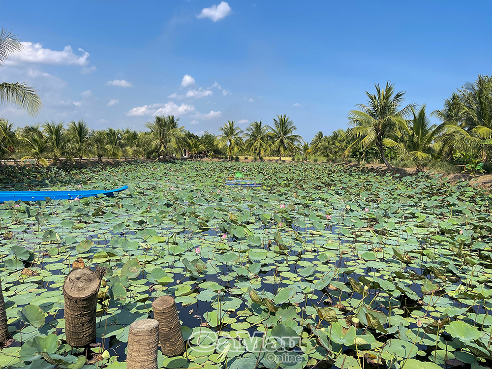 Sau 3 năm cải tạo, mảnh đất từng chỉ trông chờ vào vụ lúa nay đã “lột xác” thành không gian sinh thái xanh mát, hài hoà. Giữa sắc hồng của sen, màu xanh của dừa và cánh đồng lúa trải dài, mô hình không chỉ tạo ra sản phẩm nông nghiệp mà còn trở thành điểm đến trải nghiệm mộc mạc, gần gũi thiên nhiên.