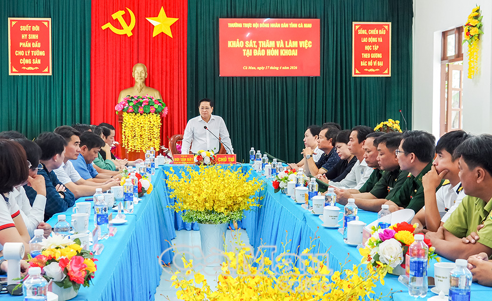 Trước đó, chiều 16/4, Đoàn đến dâng hương tại Bia tưởng niệm các anh hùng liệt sĩ khởi nghĩa Hòn Khoai; kiểm tra tiến độ các công trình, dự án phục vụ phát triển kinh tế - xã hội gắn với bảo đảm quốc phòng, an ninh. Đoàn cũng đến thăm, làm việc, nắm tình hình đời sống và điều kiện công tác của các lực lượng đang làm nhiệm vụ trên đảo như Đồn Biên phòng Hòn Khoai, Trạm Ra đa 595 (Vùng 5 Hải quân), Trạm Hải đăng và Hạt Kiểm lâm.