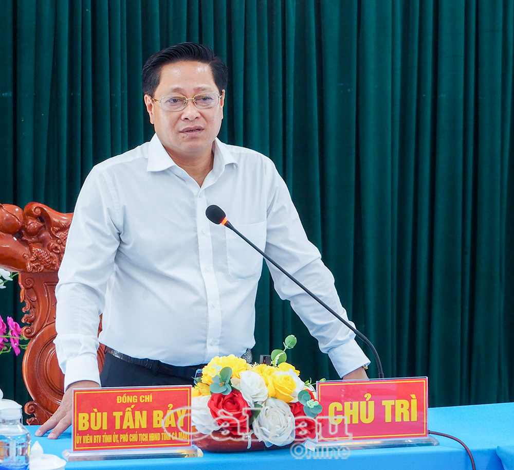 Đồng chí Bùi Tấn Bảy, Phó Chủ tịch HĐND tỉnh, phát biểu tại buổi làm việc.