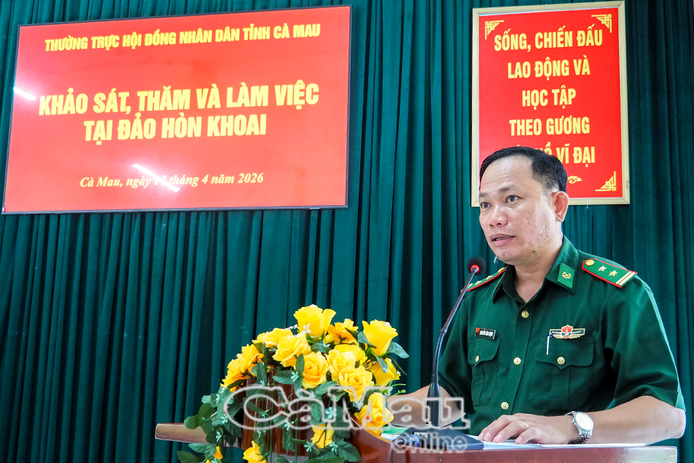 Báo Cà Mau Đoàn khảo sát do đồng chí Bùi Tấn Bảy, Uỷ viên Ban Thường vụ Tỉnh uỷ, Phó Chủ tịch HĐND tỉnh Cà Mau, làm trưởng đoàn đến khảo sát thực tế tại đảo Hòn Khoai nhằm nắm tình hình triển khai các công trình, dự án và đời sống của các lực lượng đang làm nhiệm vụ trên đảo, sáng 17/4.