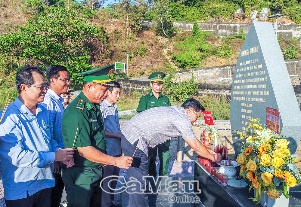 Đoàn khảo sát dâng hương tại Bia tưởng niệm các anh hùng liệt sĩ khởi nghĩa Hòn Khoai.