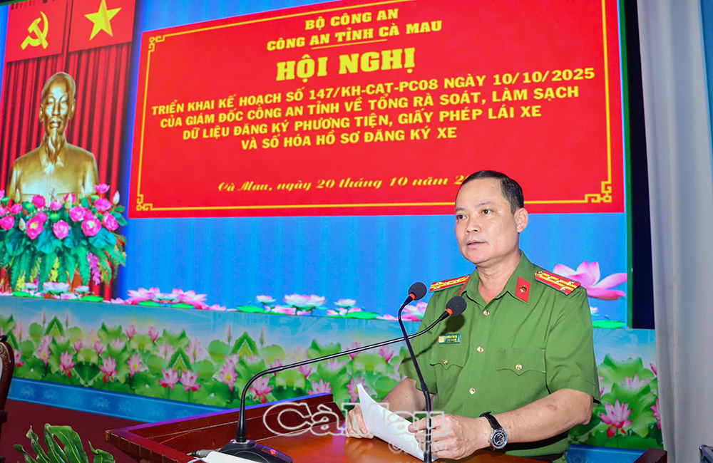 Báo Cà Mau Chiều 20/10, Công an tỉnh Cà Mau tổ chức Hội nghị triển khai kế hoạch của Giám đốc Công an tỉnh về tổng rà soát, làm sạch dữ liệu đăng ký phương tiện, giấy phép lái xe (GPLX) và số hóa hồ sơ đăng ký xe trên địa bàn. Đại tá Trần Văn Thi, Phó Giám đốc Công an tỉnh, dự và chủ trì hội nghị. Tham dự còn có đại diện lãnh đạo các đơn vị nghiệp vụ cùng Trưởng Công an các xã, phường trong tỉnh.