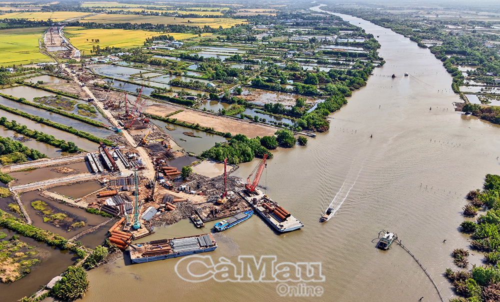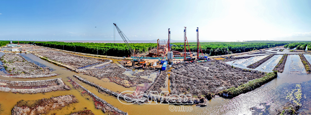 Báo Cà Mau Vượt qua khó khăn về khan hiếm nguồn vật liệu, tranh thủ thời tiết mùa khô thuận lợi cho thi công, các công trình xây dựng tuyến cao tốc Cà Mau - Đất Mũi và tuyến giao thông ra đảo Hòn Khoai đang được đẩy nhanh tiến độ.