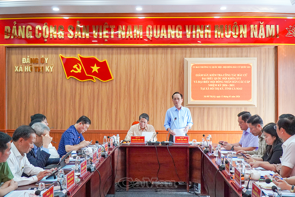 Báo Cà Mau Sau làm việc với lãnh đạo tỉnh Cà Mau vào sáng cùng ngày, chiều 12/1, Phó Chủ tịch Quốc hội Nguyễn Đức Hải, Uỷ viên Hội đồng Bầu cử Quốc gia, Trưởng Đoàn giám sát, kiểm tra công tác bầu cử của Uỷ ban Thường vụ Quốc hội - Hội đồng Bầu cử Quốc gia, có buổi làm việc với Xã Hồ Thị Kỷ về công tác chuẩn bị bầu cử đại biểu Quốc hội khoá XVI và đại biểu HĐND các cấp nhiệm kỳ 2026-2031.
