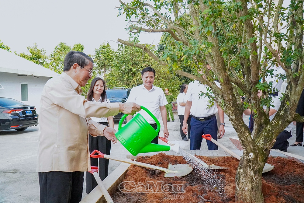 Phó Chủ tịch Quốc hội Nguyễn Đức Hải trồng cây lưu niệm trong khuôn viên trụ sở Đảng uỷ, UBND Xã Hồ Thị Kỷ.